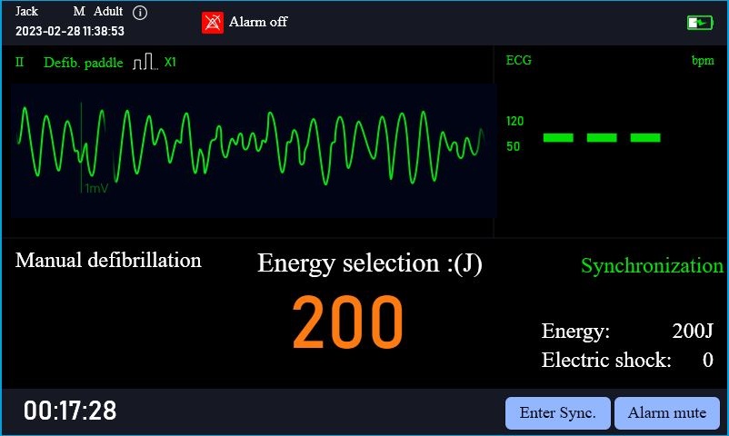 · When in synchronized cardioversion mode, “Synchronization” will appear on the screen