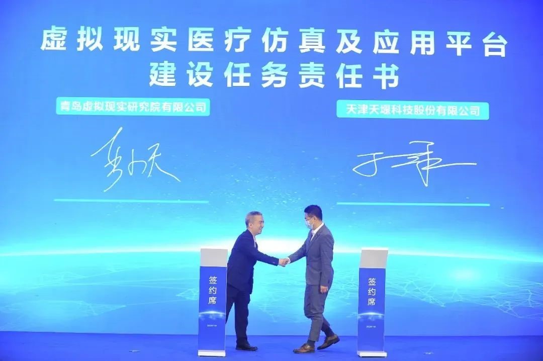 國家虛擬現(xiàn)實創(chuàng)新中心(青島)是虛擬現(xiàn)實領(lǐng)域唯一的國家級創(chuàng)新中心,由南昌虛擬現(xiàn)實研究院牽頭并聯(lián)合青島虛擬現(xiàn)實研究院共同組建。天津天堰科技股份有限公司作為青島虛擬現(xiàn)實研究院的股東單位,依托公司在VR醫(yī)療方面的創(chuàng)新技術(shù)實力和科研人員實力,參與國家創(chuàng)新中心建設(shè)工作。會上,天堰科技與青島虛擬現(xiàn)實研究院簽訂了《虛擬現(xiàn)實醫(yī)療仿真及應(yīng)用平臺》建設(shè)任務(wù)責(zé)任書,以期深度探索醫(yī)學(xué)模擬教學(xué)與虛擬現(xiàn)實的融合發(fā)展,推動未來醫(yī)學(xué)教學(xué)模式巨大變革,打造以虛擬現(xiàn)實為基礎(chǔ),實踐為目的的虛擬醫(yī)療體系。同時,天堰將與中心合作單位協(xié)同創(chuàng)新,共同推動國家創(chuàng)新中心的生態(tài)化可持續(xù)發(fā)展,實現(xiàn)虛擬現(xiàn)實在中國重點產(chǎn)業(yè)的創(chuàng)新應(yīng)用;引領(lǐng)虛擬現(xiàn)實產(chǎn)業(yè)升級改革,持續(xù)推動產(chǎn)業(yè)的高效和高質(zhì)量進步。