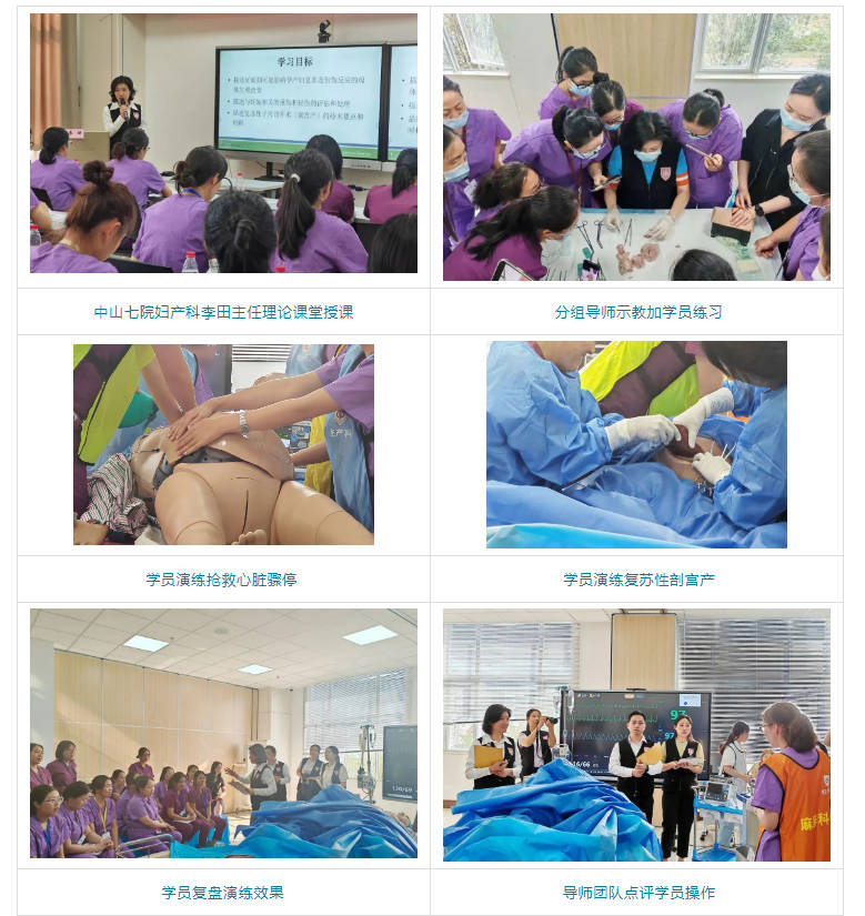 整個培訓歷時兩天,招收學員40人,均是來自臨床一線的產(chǎn)科醫(yī)師、助產(chǎn)士、護士等相關醫(yī)護人員,中山七院婦產(chǎn)科有8位導師參與了培訓、授課,老師們準備的非常充分,課堂氛圍有趣而又緊張,學員們聽的非常認真,并積極討論記錄。整個培訓包括8個課題,每個課題都先從理論開始,理論結(jié)束后緊跟著分組實操或者演練,課程最后還有筆試和操作考核。考核結(jié)束后,組織團隊為學員頒發(fā)了培訓合格證書。