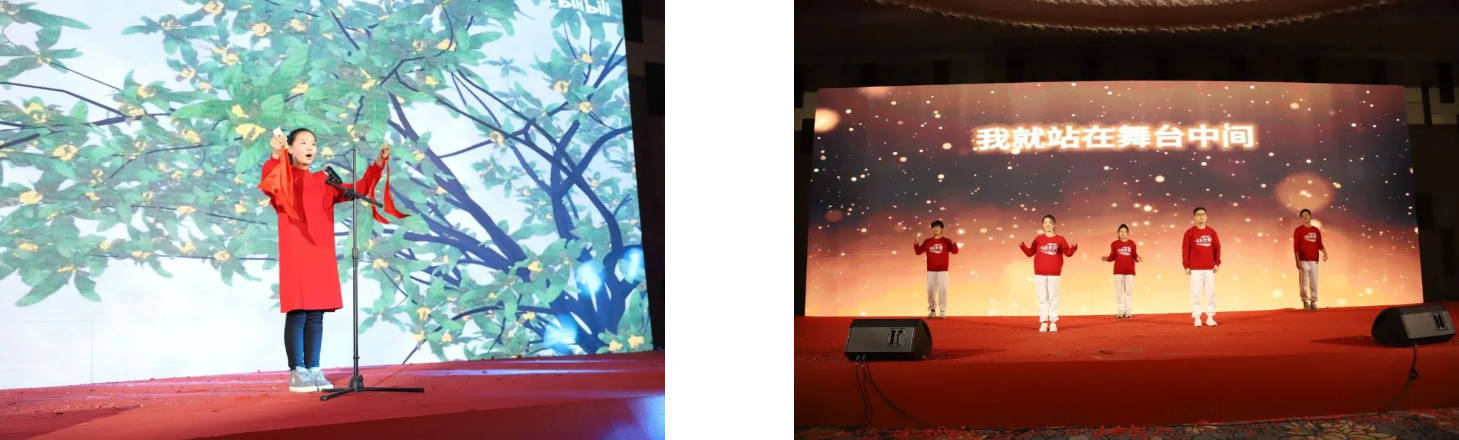 在精彩的晚會(huì)環(huán)節(jié),多才多藝的同事們帶來(lái)了精彩的文藝匯演。熱情火熱的開(kāi)場(chǎng)舞、喜慶歡快的《好運(yùn)來(lái)》、精彩紛呈的舞龍表演、博大精深的武術(shù),整場(chǎng)晚會(huì)喝彩聲此起彼伏;來(lái)自聽(tīng)障同事們的手語(yǔ)表演《我相信》,讓我們感受到了生命的無(wú)限可能;充滿熱情與自豪感的詩(shī)歌朗誦少兒響板和《中華頌》,透過(guò)孩子清脆響亮的聲音展示了對(duì)祖國(guó)的熱愛(ài)和對(duì)未來(lái)的期待;來(lái)自銷售體系、研發(fā)體系、支持體系和生產(chǎn)體系的舞蹈串燒將整場(chǎng)晚會(huì)推向高潮。演出結(jié)束后,活動(dòng)在豐盛的晚宴和舉杯共慶的祥和氣氛中結(jié)束。
