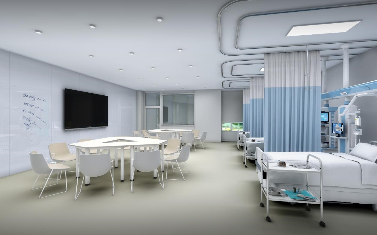 地下一層考試中心30站和中控室及配套用房,是目前單體量較大的智能化OSCE考試中心;地上一層設(shè)置應(yīng)急處置中心、急救技能實(shí)訓(xùn)室、模擬ICU、觀摩室、婦兒技能實(shí)訓(xùn)室和外科技能實(shí)訓(xùn)室?,F(xiàn)實(shí)訓(xùn)中心已經(jīng)正式運(yùn)營(yíng)并多次舉辦臨床技能考核,其中圓滿承接了2021年第十屆全國(guó)大學(xué)生醫(yī)學(xué)技能競(jìng)賽。
