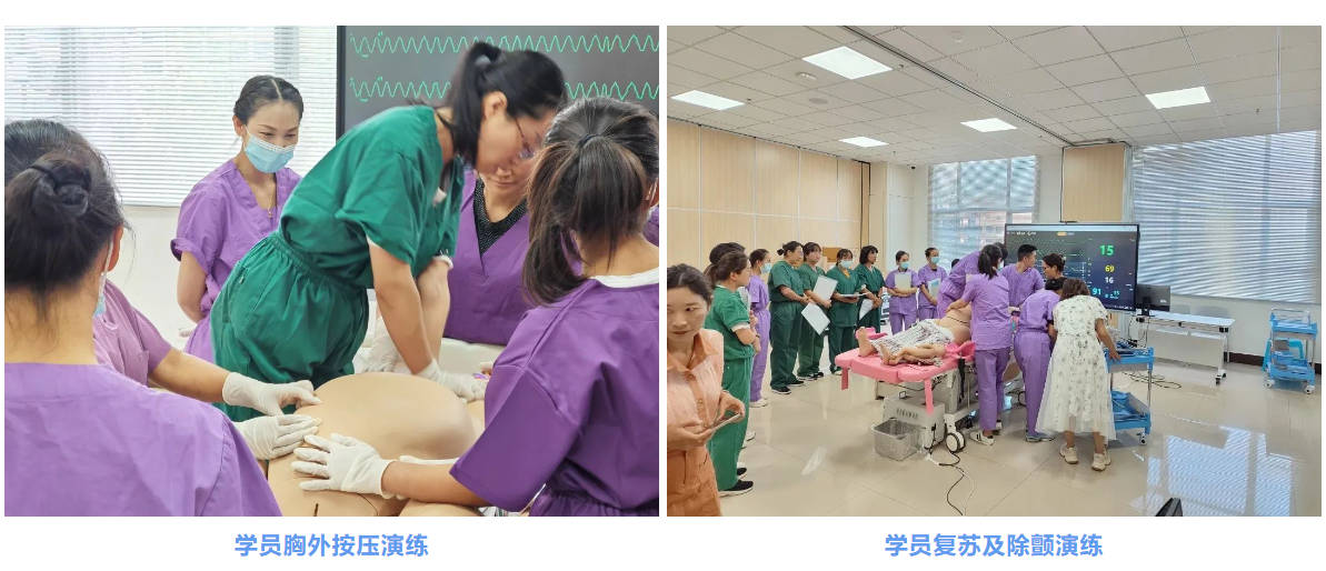 實操的重頭戲是天堰科技模擬人女媧支持的孕產(chǎn)婦復(fù)蘇部分,吳軒全副院長全程耐心的為學(xué)員講解流程和救治要點,強調(diào)多學(xué)科協(xié)作和統(tǒng)一調(diào)度指揮在救治過程中的重要性;她反復(fù)重申:對于基層醫(yī)務(wù)人員,訓(xùn)練的重點應(yīng)該放在心臟驟停的識別、啟動應(yīng)急反應(yīng)系統(tǒng)、心肺復(fù)蘇的流程和手法、復(fù)蘇性剖宮產(chǎn)的時機掌握、除顫、急診搶救用藥等等危急情況的應(yīng)急處置能力和基礎(chǔ)技能操作。天堰的技術(shù)人員全程配合導(dǎo)師的授課,并協(xié)助操作模擬人,得到了老師學(xué)員的一致認(rèn)可。