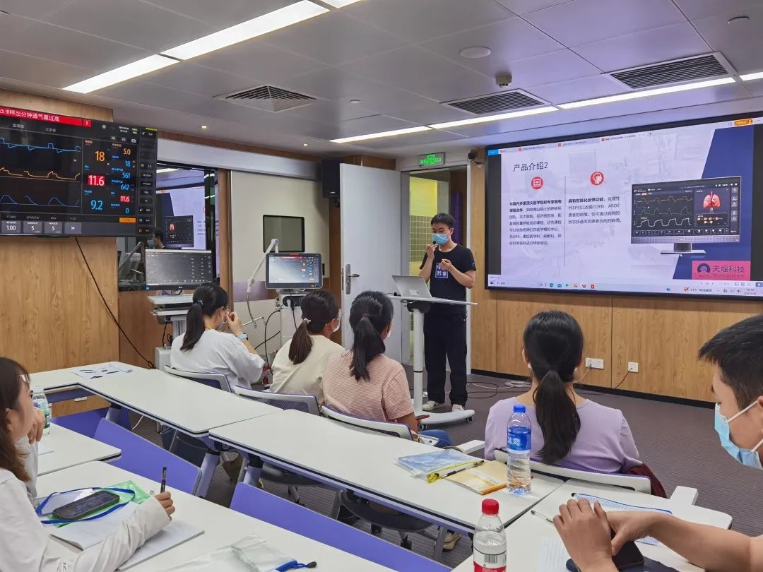 在“E學課程-機械通氣實戰(zhàn)訓練營”即將結束時,天堰科技的產(chǎn)品經(jīng)理向會議專家和參會學員介紹了公司自主研發(fā)的“呼吸力學仿生綜合訓練系統(tǒng)”,取得了不錯的反響,被許多學員贊譽為“國貨之光”。